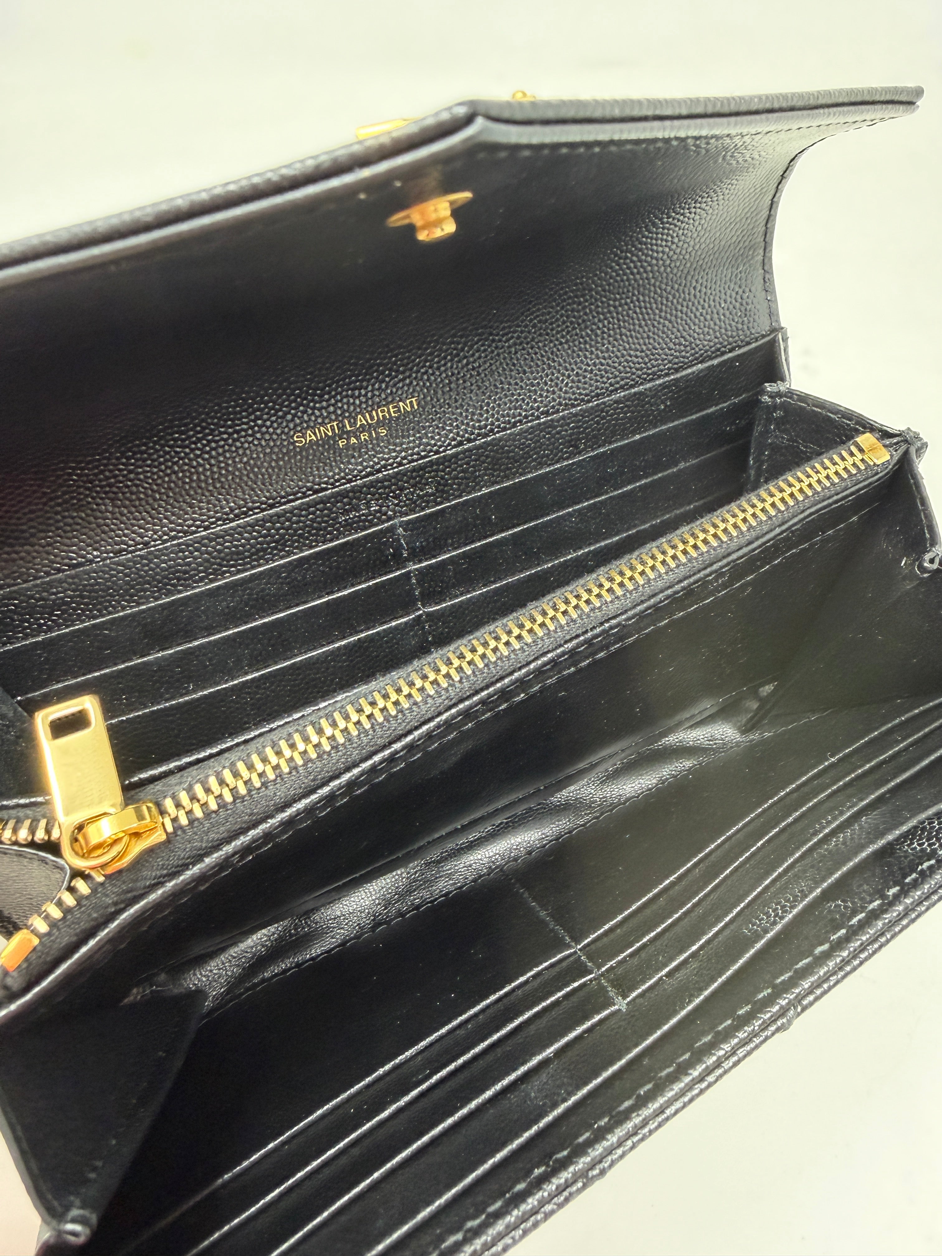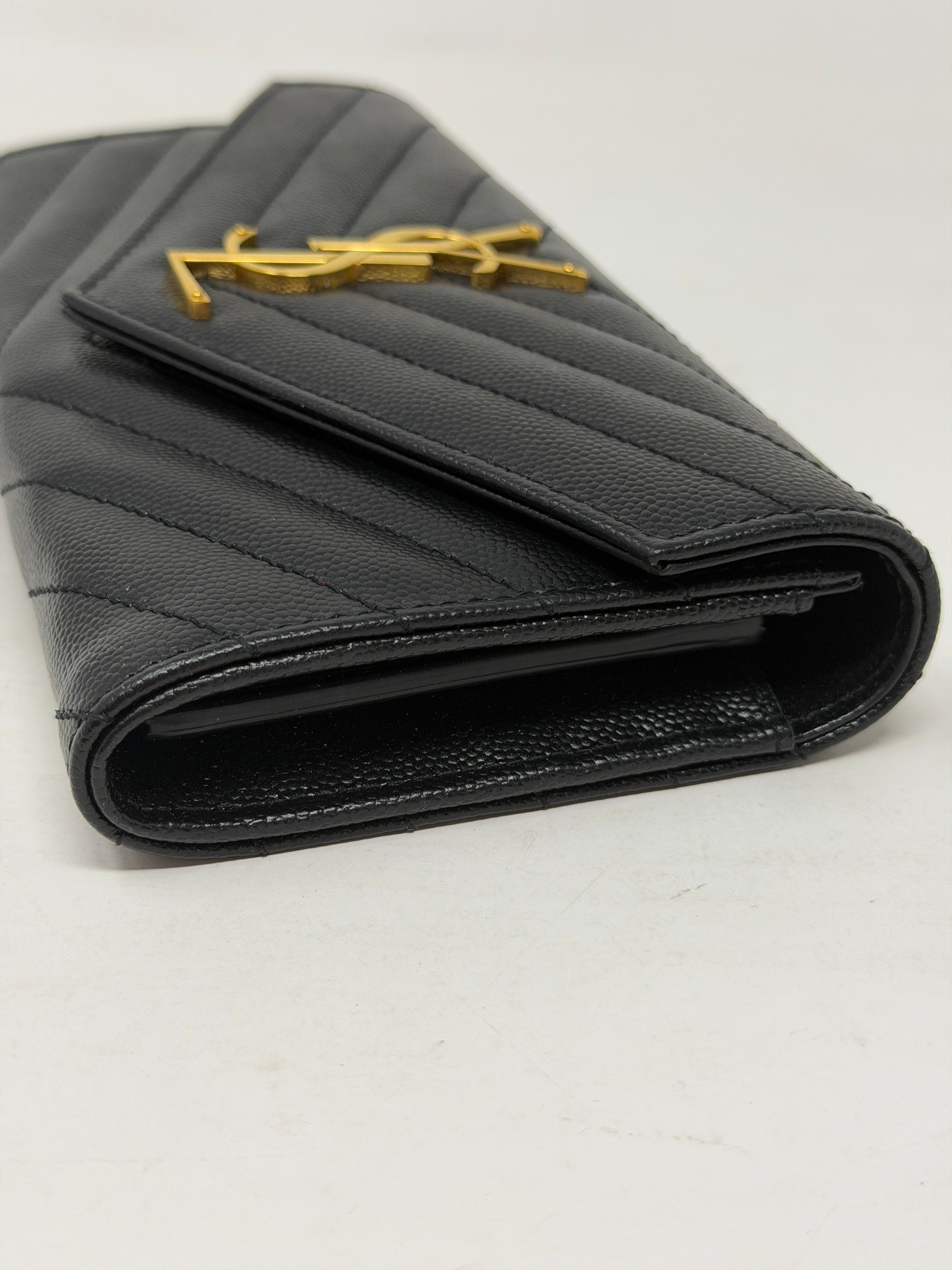 Saint Laurent Cassandre portafoglio grande pelle nera